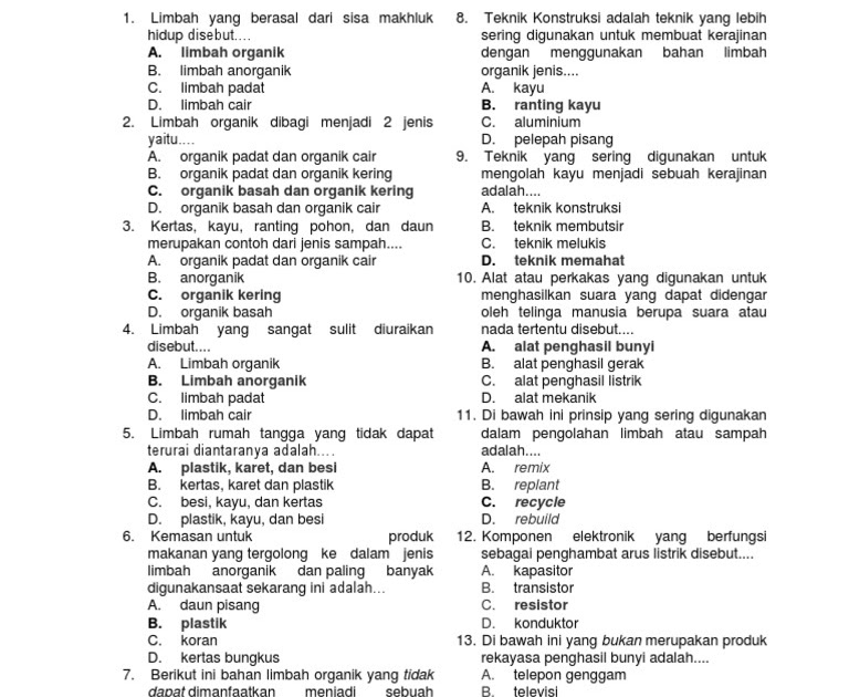 Kak hinda harap, kumpulan bank soal ini dapat membantu dan mengasah kemampuan. Soal prakarya kelas 7 kerajinan doc. Choose the best answer by crossing a, b. Berikut ini, soal pg bahasa inggris beserta jawaban dimulai dari soal nomor 16 sampai dengan 25. 30 soal pg prakarya kelas 10 semester 2 jawaban.
